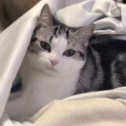 哗哗线初初来到家中,总是往阴暗角落里钻,阿科耐心把他抱到沙发上,谆谆教诲:「哗哗线,你是我们的猫主子,你在家里的地位是很高的,你要尊重你的身份,主子就是要舒舒服服坐在沙发上。」可能是阿科的引导起了作用,哗哗线在第三天便对我们放下了戒备。我坐在沙发上看电视,他会跑来和我一起看,趴在我的腿边,有时还会爬到我的胸口,企图舔我的脸;我在家中写作,他会爬到书桌下面的抽屉柜上,偷偷观察我;我陪他玩闹,用手捂住他的小爪子,他会把爪子抽出来再搭在我的手背上,我重新捂住他的爪子,他继续把爪子抽出来盖住我的手,如此反复不止。