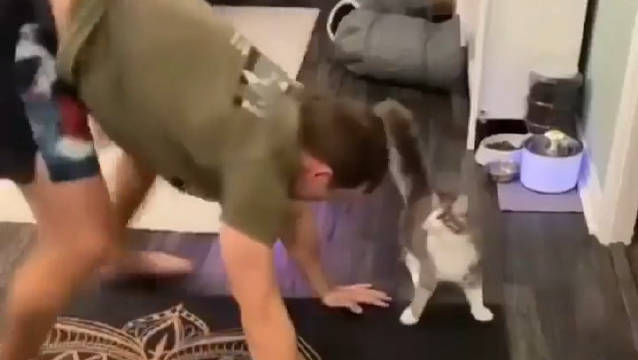 :铲屎的,头别撞地,来,我肚子给你靠。
