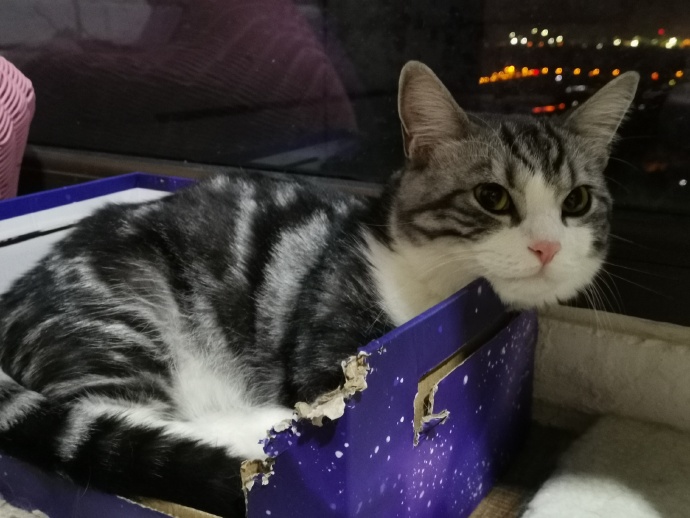 二呆呆跑到他心爱的(破)小(盒)窝(子)里准备碎觉啦