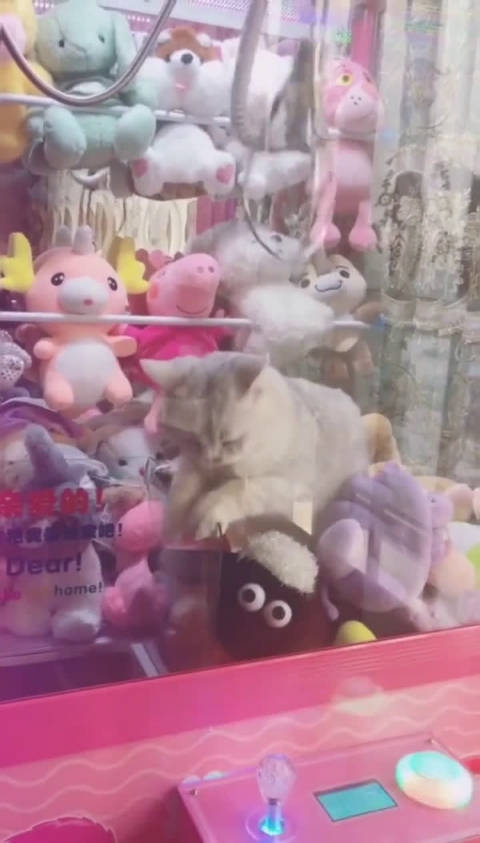 娃娃机抓猫咪,这不是技术活,是感情活 小猫咪:放开我放开我,给我抓抓脑袋我自己下去
